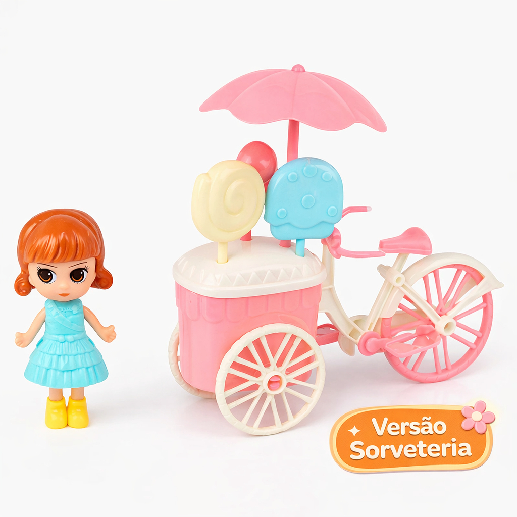 Kit Boneca Bel Scooter Infantil Kit Boneca Bicicleta Doce Sorveteria Kit Baby Bel Cozinha Acessórios