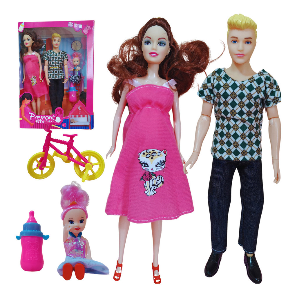 Kit Boneca Grávida Bebê Na Barriga Familia Promoção Barato