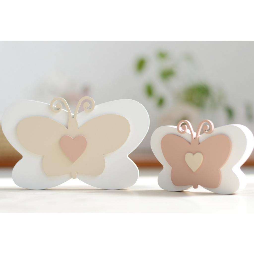 Borboletas Decorativas em MDF | Conjunto com 2 peças Delicadeza que encanta e transforma o ambiente! Nossas borboletas decorativas são feitas em MDF com pintura em tons suaves, perfeitas para compor a decoração do quartinho do bebê, do cantinho da criança ou até mesmo dar um charme especial a ambientes afetivos. Com design exclusivo, cada peça combina camadas em relevo, detalhe em coração central e anteninhas modeladas com acabamento artesanal. - Tamanhos Borboleta maior: 16 cm (largura) x 10 cm (altura) Borboleta menor: 11 cm (largura) x 7 cm (altura) - Prazo para envio: até 1 dia útil Feito com amor, pensado nos detalhes e pronto para levar poesia ao seu lar. Importante: O valor informado refere-se ao kit completo (2 peças). Antes da compra, confira as medidas para garantir que atendem às suas necessidades. Objetos de decoração não acompanham o kit. Atendimento de segunda a sexta, das 8h às 17h. Ciranda Arte Criativa agradece sua visita!