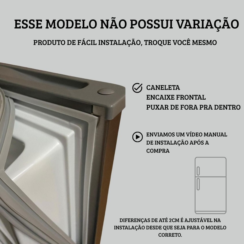 Mak é um revendedor oficial de borrachas e gaxetas da ILPEA DO BRASIL LTDA, a única fabricante de vedações para grandes marcas. Estamos sempre à disposição para esclarecer dúvidas e ajudar na instalação de seus produtos. Este anúncio inclui: Um(1) Jogo de Borracha Gaxeta Porta Superior + Porta Inferior Medidas da borracha de ponta a ponta: Porta Superior: 46cm X 66cm Porta Inferior: 66cm X 112cm Marca: ILPEA Modelos compatíveis: BRM44D | BRM44E | BRM47D | CRM44D | CRM45B | BRM47B | BRD47D | BRQ47B | BRM47A | CRM45A | BRD45D | CRD45D | CRD45E | BRM48N | BRM39B | BRR49 | CRD46A | CRM49A | CRB44D | CRM51 | CRM51A | CRM44 | BRN48 | CRM52A | BRM48B | BRD47B Tipo de fixação (encaixe da borracha): Borracha encaixada por Pressão (Canaleta). Perguntas Frequentes (FAQ): • Como vejo o modelo exato da minha geladeira? Em seu refrigerador, existe uma etiqueta que informa todas as características de seu produto, incluindo o modelo técnico que consideramos ao indicar a borracha original compatível. Essa etiqueta pode estar dentro ou atrás do refrigerador. Verifique o modelo e nos informe através do campo de perguntas para receber o link ideal para adquirir seu produto. • Como medir corretamente a borracha? Utilizando uma trena ou fita métrica, meça de ponta a ponta a sua borracha antiga e compare as medidas externas com as informações no anúncio. As medidas descritas em centímetros no anúncio são apenas comparativas e pequenas variações são totalmente aceitáveis, contanto que o modelo esteja de acordo com o anunciado. Ao realizar a compra conosco, disponibilizamos um passo a passo para auxiliar na instalação da borracha. Atendimento garantido! Imagem meramente ilustrativa Emitimos Nota Fiscal (NF) para pessoas físicas e jurídicas.