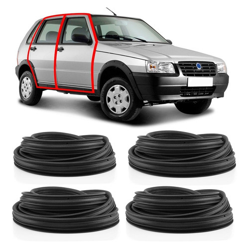 Kit Borracha Vedação Uno Mille 1994 1995 1996 1997 4-portas