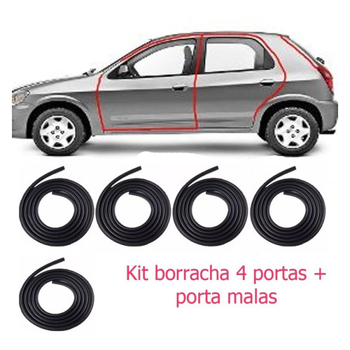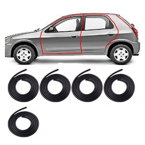 Temos o prazer de trazer mais um produto de excelente qualidade, sucesso de vendas com preço justo! Kit Borrachas Vedação de 4 Portas + porta malas. Essa é a borracha que faz o contorno da porta, vai fixada na carroceria, evitando que entre água, poeira para dentro do veiculo, diminuindo até barulhos internos e amortecendo o fechamento da porta Os veículos possuem componentes de borracha nas portas, vidros e no teto que tem por função evitar a infiltração de água e poeiras. A avaliação periódica desses componentes é recomendada, para que eventuais infiltrações não comprometam a lataria, provocando sua corrosão e molhando o interior do veiculo. Essas borrachas protetoras são conhecidas como guarnição, e, além de serem instaladas no teto e nas portas, também podem ser encontradas nas áreas de contato entre capô, no porta-malas e nos vidros, evitando o contato direto da tampa com a carroceria. Essa é a borracha que faz o contorno da porta, vai fixada na carroceria, evitando que entre água, poeira para dentro do veiculo, diminuindo até barulhos internos e amortecendo o fechamento da porta. Compatível com Compatível com Celta 2000 2001 2002 2003 2004 2005 2006 2007 2008 2009 2010 2011 2012 2013 2014 2015 2016 - Em todas as versões fabricadas. Acabamento com aba. Para outros carros e modelos, entre em contato conosco. Borrachas na cor preta. Produto de excelente qualidade 100% garantido. Fixado por encaixe Garantia de 3 meses