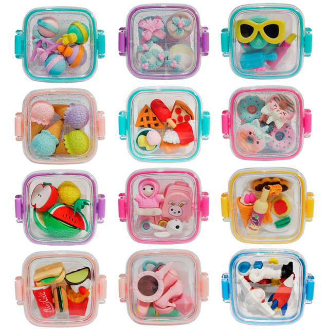 Kit Borrachas Formato de Comidas e Objetos c/ Pote com Travas Qihao