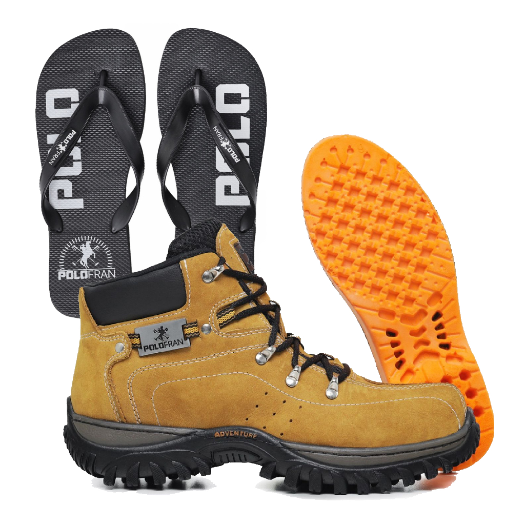 Kit Bota Adventure Botina Polo Fran Masculina + Palmilha gel + Chinelo