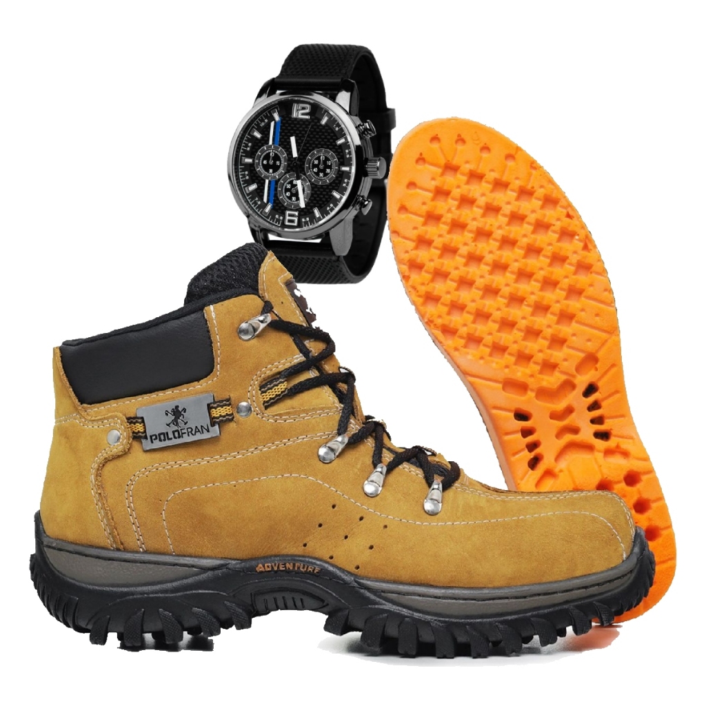 Kit Bota Preta Adventure Botina Polo Fran Masculina + Palmilha gel + Relógio