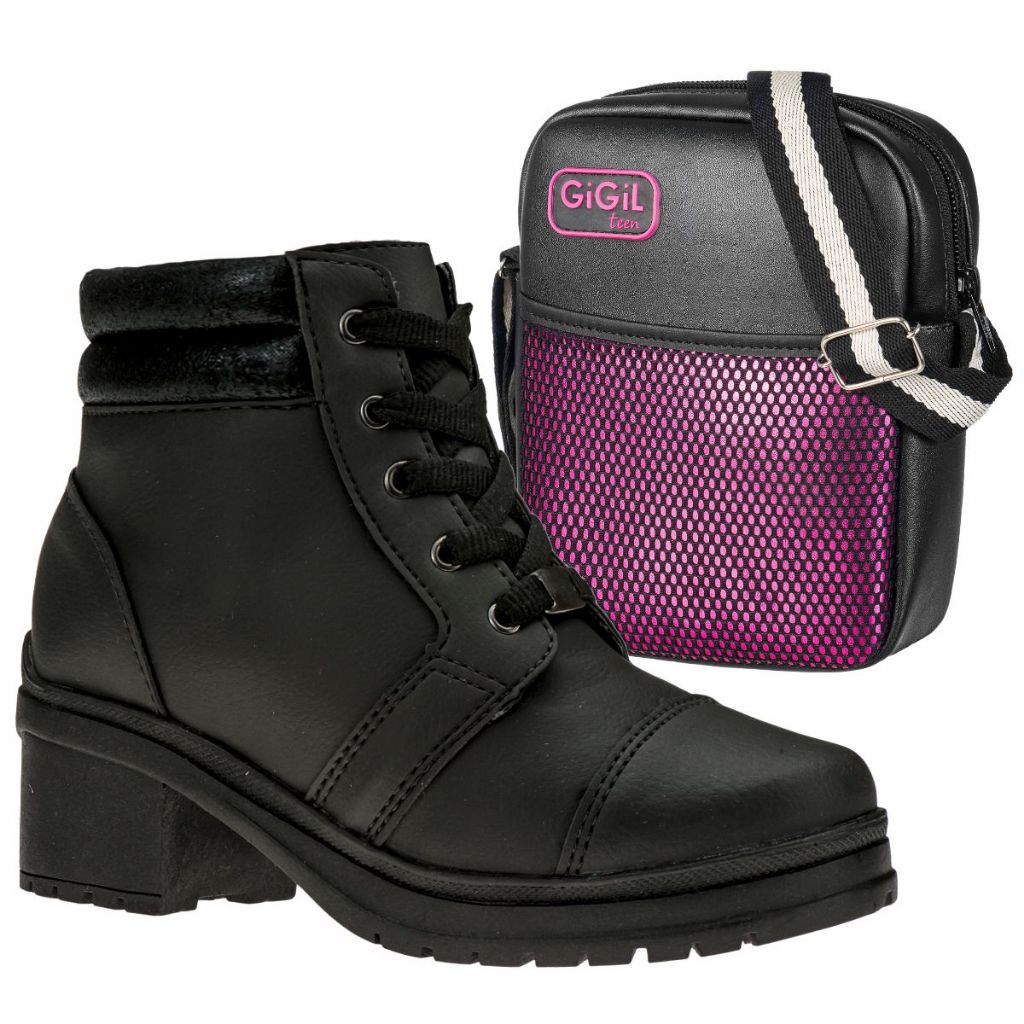 BOTA: Calça numeração exata • Material externo: Sintético • Material interno: Tecido com Espuma Super Conforto • Palmilha: Confortável, macia. • Sola: TR - material da melhor qualidade, emborrachado, antiderrapante • Medida do salto: 5,0 cm • Fechamento: Cadarço BOLSINHA: • Material externo: Napa Sintético Macio • Fechamento: Zíper • Logo Frontal • Embalagem individual - PROTEÇÃO DO ENVIO: Caixa individual - Embalada com Envelope Plástico Resistente. - FOTO: real do nosso produto. - Devolução grátis e reembolso em até um mês após receber o produto. Eles voltaram! Os coturnos estão de volta para a coleção deste inverno. As botas, utilizadas por militares, caíram no gosto da moçadinha e ganharam diversas versões nesta estação. O Coturno da GiGiL vem com um salto plataforma tratorada e uma forração de espuma, macio e confortável, para você arrasar nas produções sem perder o conforto! E se você é daquelas adeptas a um look despojado e cool, não pode deixar de fora do seu closet! CONSERVAÇÃO: * Para conservar o seu modelo novo e bonito por muito mais tempo é fundamental seguir algumas recomendações: - A limpeza deve ser feita com sabão neutro e pano úmido e não deve ficar de molho. Não usar nenhuma fonte de calor para secar. Guardar em local sem umidade e deixar descansar na sombra por 12 horas após o uso. - Não utilize Máquina de lavar e secar. - Independente do material do seu sapato, não esfregue com força ou passe esponjas grossas. - Caso alguma dessas indicações não forem cumpridas, isso poderá danificar os materiais, a cor e a textura do seu calçado. GiGiL TEEN - SEU ESTILO COM UM CLIQUE! Somos uma marca de moda, criativa e antenada. Nosso foco é criar calçados com qualidade e preço justo. Superar suas expectativas e oferecer praticidade de compra são nossos objetivos.
