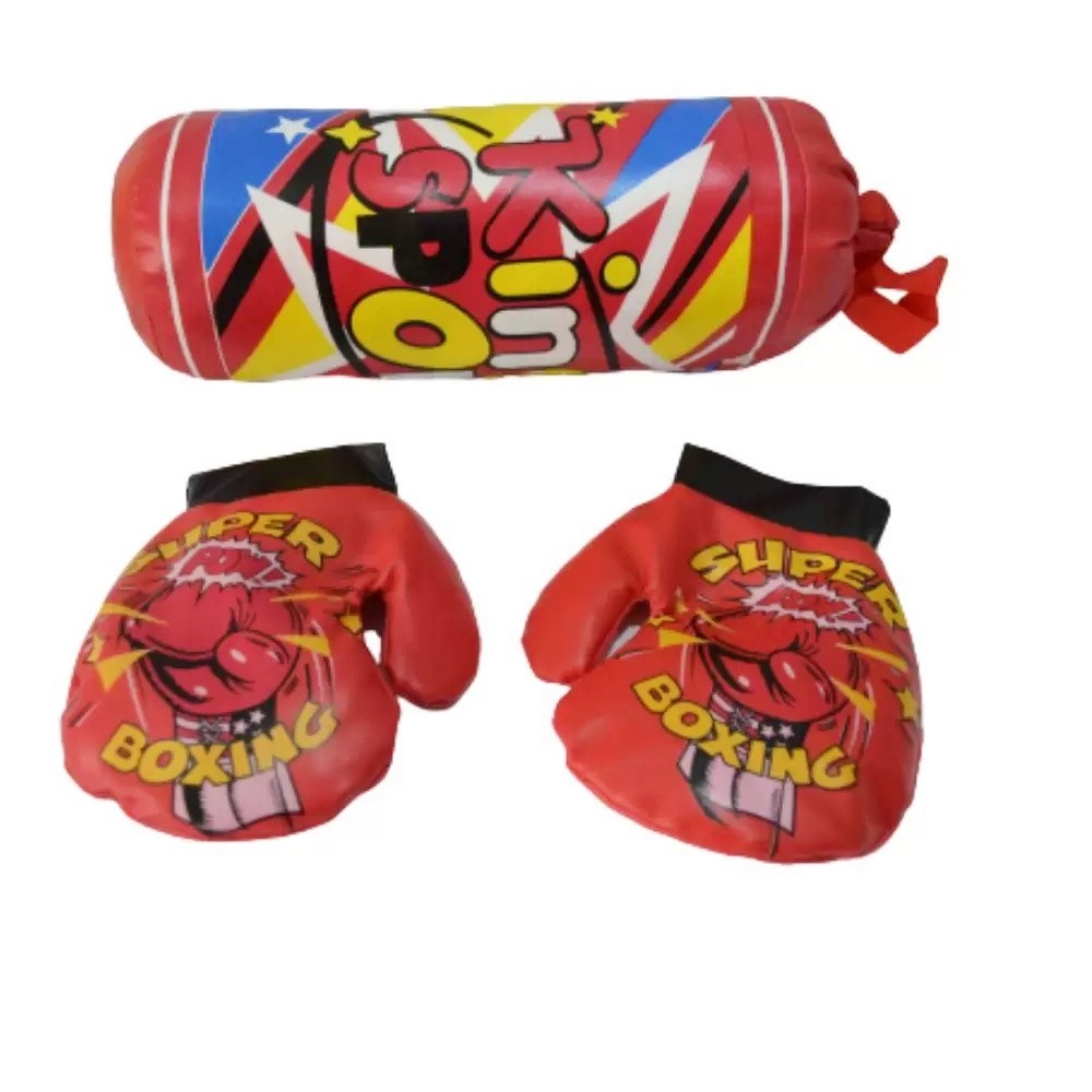 Kit Boxe Luva e saco de pancada Infantil Ajuda as crianças a liberarem o estresse depois de umas boas pancadas neste saco e luvas personalizados. Treine o seu pequeno logo cedo para aprender este esporte importante como o boxe. Com um material leve e macio composto de plástico e espuma, personalizado e colorido. Qualidade e resistência. Dimensões aproximadas do saco de pancada: 30cm x 11cm. Contém: 1 Saco de boxe infantil personalizado com 2 luvas. Material: Plástico e espuma. Cor: Colorido O produto é indicado para crianças de 3 à 5 anos