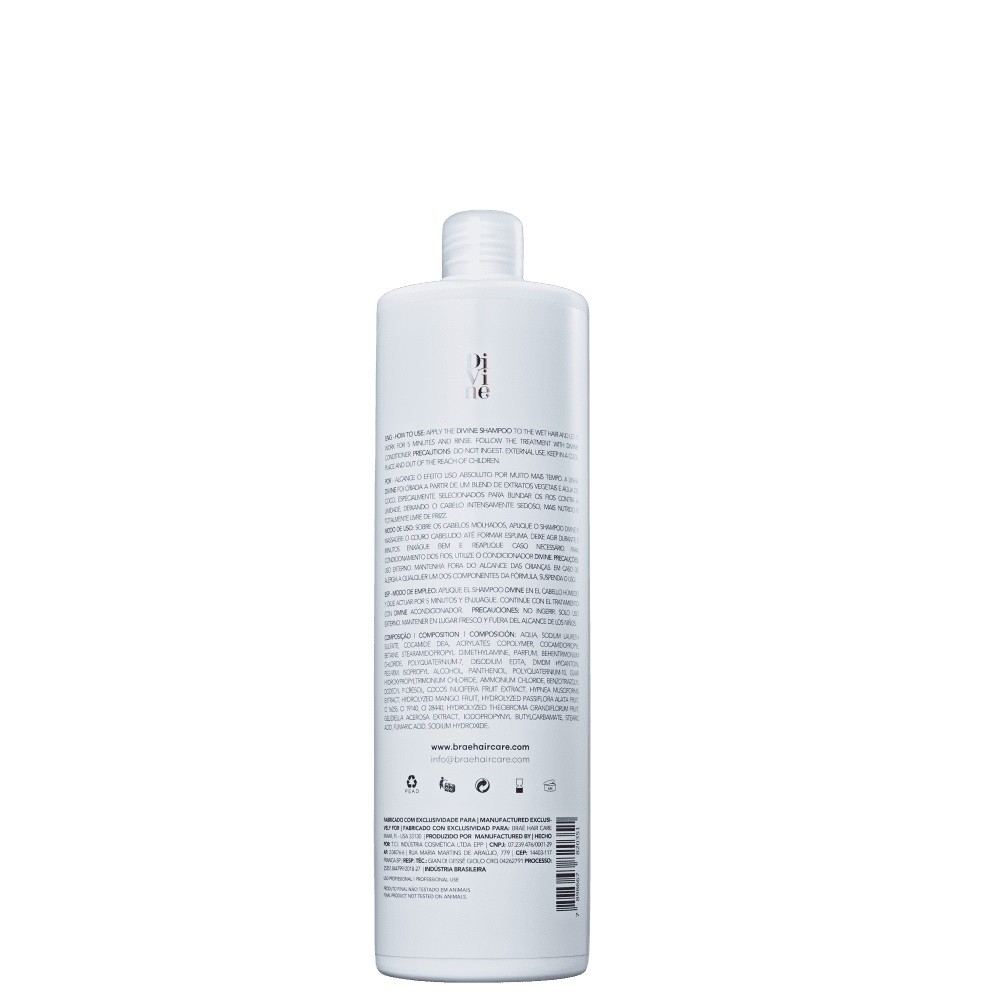 Kit BRAE Divine Anti-Frizz - Shampoo 1L (2 Unidades) Shampoo para cabelos com frizz. Braé Divine deixa os fios mais alinhados e disciplinados durante a limpeza. O Shampoo Braé Divine combina ativos com tecnologias para eliminar o volume e proporcionar um cabelo mais controlado. É perfeito para quem já tem química e deseja manter o efeito liso duradouro. Como Usar Conselho de Aplicação Aplique o shampoo nos cabelos molhados e massageie o couro cabeludo até formar espuma. Enxágue. Repita o procedimento se sentir necessidade.