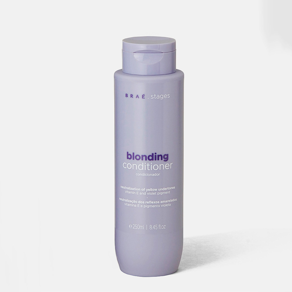 Kit Braé Stages Blonding Duo (2 produtos) Este Kit Contém Braé Stages Blonding - Shampoo 250ml: para cabelos loiros ou descoloridos. Limpa e trata os fios de forma eficaz, realçando a cor dos cabelos claros. Seu efeito matizador proporciona loiros mais saudáveis, vibrantes e iluminados por mais tempo. Braé Stages Blonding - Condicionador 250ml: para cabelos loiros ou descoloridos. Braé Stages Blondig transforma os seus cabelos loiros rapidamente, neutralizando os reflexos amarelados e alaranjados sem manchar os fios. Sua fórmula leve e suave condiciona e trata, realçando a cor e deixando seu loiro mais saudável, vibrante e iluminado por muito mais tempo. Conselho de Aplicação Shampoo: aplique nos cabelos molhados e massageie o couro cabeludo até formar espuma. Enxágue. Repita o procedimento se sentir necessidade. Condicionador: aplique nos cabelos limpos e levemente úmidos. Pause de 1 a 3 minutos. Enxágue completamente.