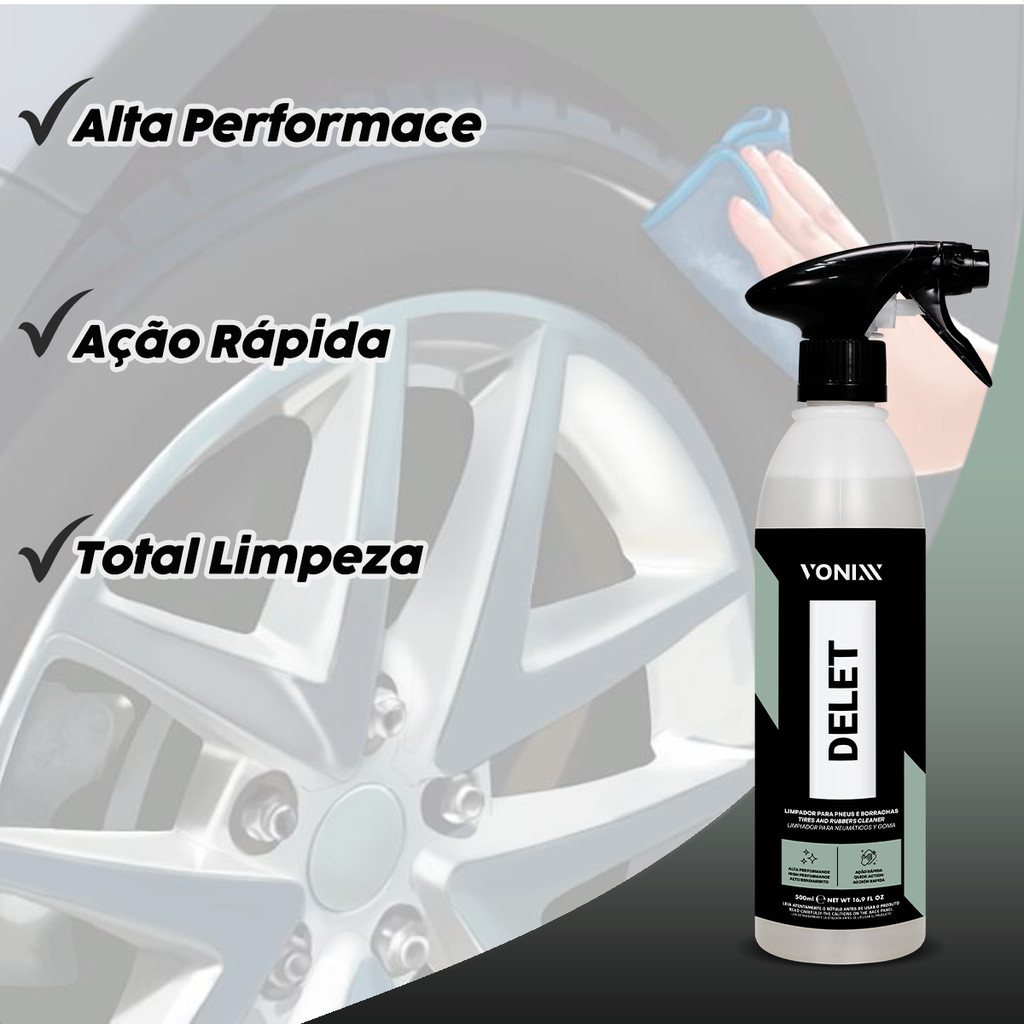 Kit Brilho para Pneus com Izer Limpador De Roda Delet Limpador De Pneu Shiny Pretinho Vonixx