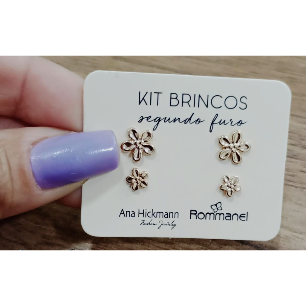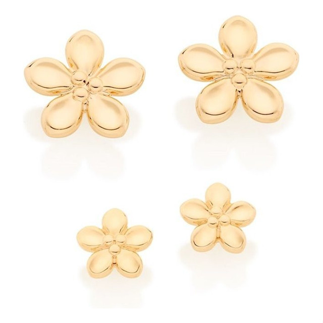 Kit Brinco 2° Segundo Furo Rommanel Flores Folheados a Ouro 2 pares 526423