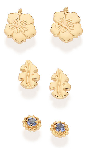 KIT BRINCO TRIPLO COM 1 PAR FLOR DE HIBISCUS, 1 PAR SOLITÁRIO CRAVEJADO POR 2 ZIRCÔNIAS DE 2,5 MM COM ESFERAS AO REDOR E 1 PAR FORMATO FOLHA.MED. 0,40 CM X 0,40 CM / 0,80 CM X 0,50 CM / 0,80 CM X 0,90 Kit de Brincos Triplo Rommanel - Elegância e Versatilidade em Cada Detalhe Apresentamos o exclusivo Kit de Brincos Triplo Rommanel, perfeito para quem ama variar o estilo com peças delicadas e sofisticadas. Composto por: 1 par flor de hibiscus 1 par solitário cravejado com 2 zircônias de 2,5 mm e esferas ao redor 1 par em formato de folha Medidas: Flor de Hibiscus: 0,40 cm x 0,40 cm Solitário: 0,80 cm x 0,50 cm Folha: 0,80 cm x 0,40 cm Joia banhada a ouro 18K, com acabamento impecável e brilho duradouro, para trazer elegância e versatilidade a qualquer ocasião. *****PRODUTO ORIGINAL***** ACOMPANHA A PEÇA: - NOTA FISCAL - CERTIFICADO DE GARANTIA - EMBALAGEM PARA PRESENTE - ETIQUETA DO PRODUTO NA PEÇA SOBRE A ROMMANEL: - Mais de 30 anos no mercado; - Linha diversificada com mais de 3000 modelos; - Linhas feminino, masculino e infantil; - Presente em todo Brasil e em mais de 20 países; - Joias folheadas a Ouro 18k, Rhodium e Rhodium Negro; - Antialérgicas, não possuem níquel em sua composição; - Possui licenciamentos com Ana Hickmann, Gio Antonelli e Simone&Simaria, que assinam coleções exclusivas.