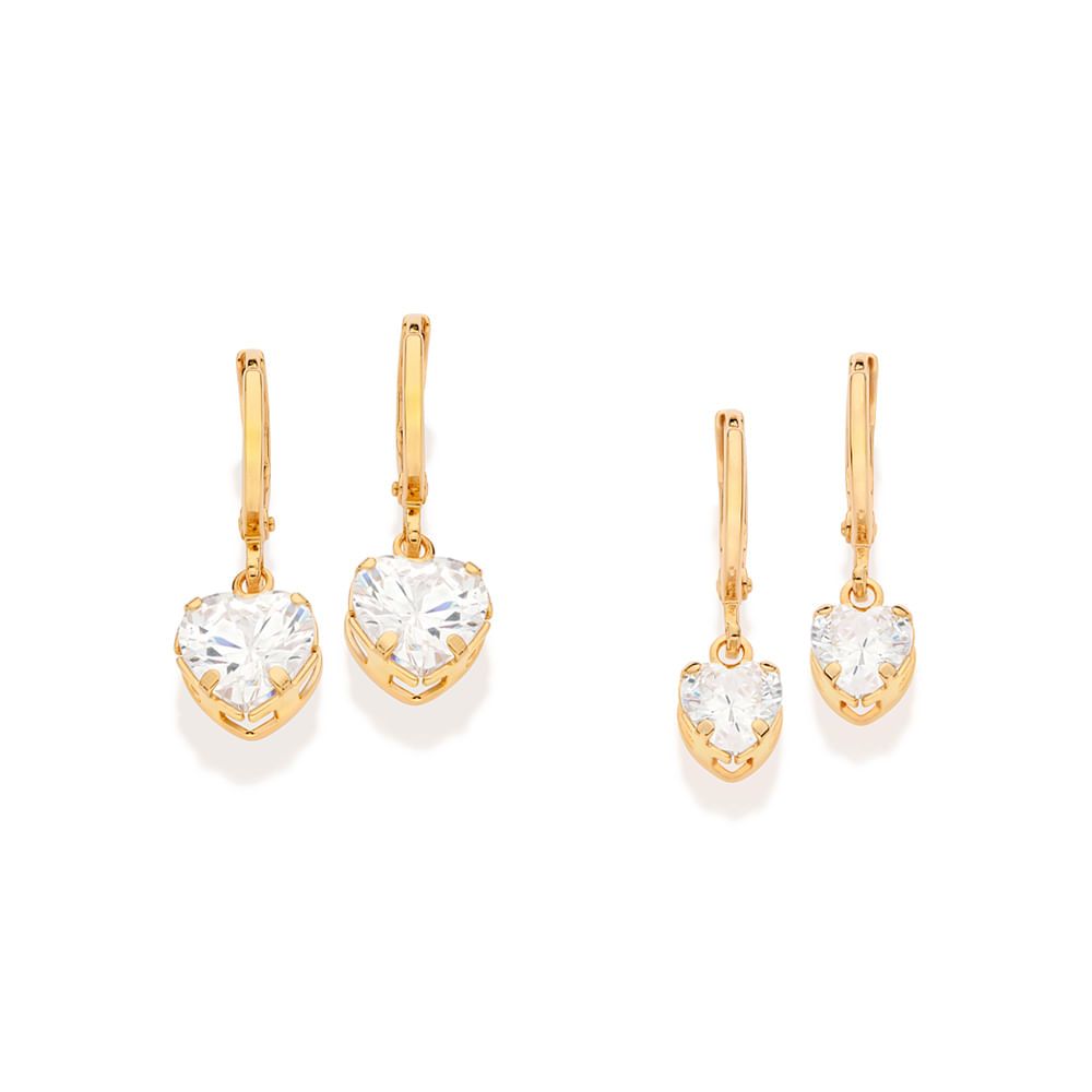Kit Brincos Rommanel Argola Com Coração de Zircônias 527300