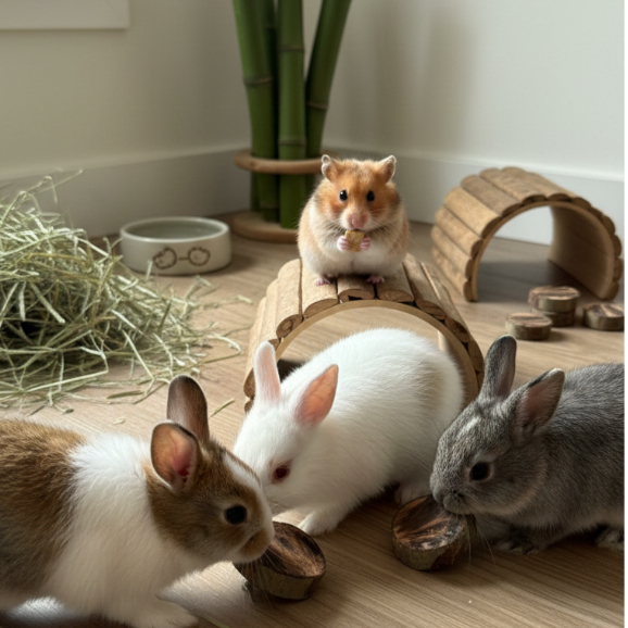 Kit Brinquedo Bambú Natural + Bolacha + Palitos de Goiabeira Para Roedores Porquinho Da Índia Hamster coelho