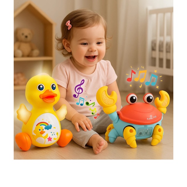 KIT Brinquedo Caranguejo Fujão Sons Luzes Pato Dançarino Musical Brinquedo Infantil Interativo