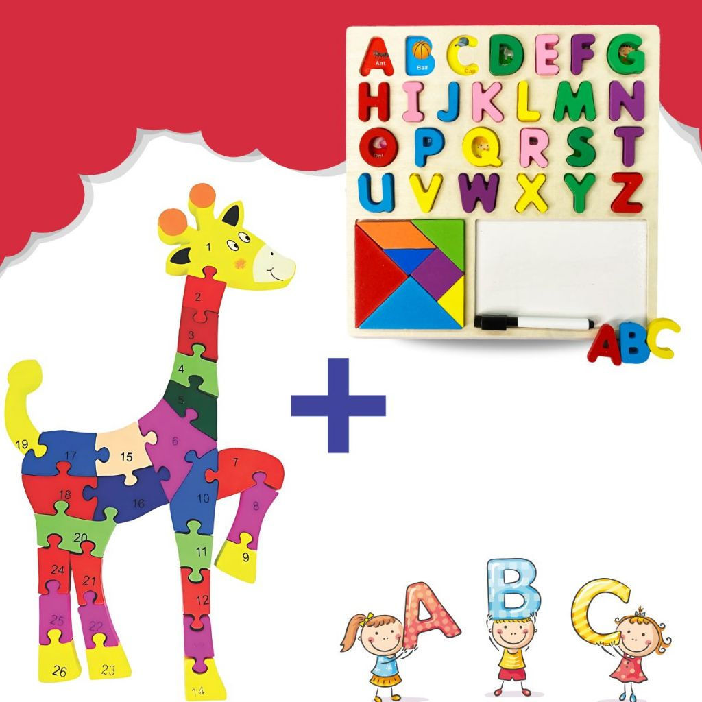 Kit Brinquedo Divertido Encaixe de Letras + Quadro Branco e Quebra-Cabeça MDF Criatividade