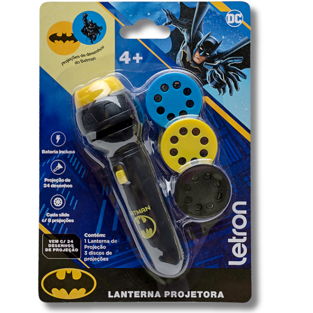 OLÁ CLIENTE, BEM VINDO AO NOSSO ANÚNCIO, É UM PRAZER ATENDÊ-LO. 1 LANTERNA BATMAN PROJEÇÕES. APRESENTAÇÃO DO PRODUTO: * Este brinquedo encantador é ideal para crianças a partir de 4 anos, proporcionando horas de diversão e aventura. Com a capacidade de projetar 24 desenhos diferentes, a lanterna transforma qualquer ambiente em um mundo de fantasia, estimulando a criatividade e a curiosidade dos pequenos. A Lanterna Batman é um presente ideal para os fãs do super-herói, proporcionando uma experiência interativa que pode ser compartilhada entre amigos e familiares. Com um design atraente e fácil de usar, é uma adição perfeita a qualquer coleção de brinquedos. ITENS INCLUSOS: * 1 Lanterna Batman * 3 Discos com 8 projeções Observação: Fotos meramente ilustrativas, as cores podem variar conforme fornecimento. PERGUNTAS FREQUENTES: * O produto é original ? R: Sim, o produto é original, adquirida em distribuidores autorizados. * Emite nota fiscal ? R: Sim, emitimos a nota fiscal em nome do comprador cadastrado na plataforma. QUEM SOMOS: A Gseller Variedades atua no mercado de vendas online desde de 2019, atendendo a diversos nichos, com qualidade e rapidez. Somos totalmente focados na satisfação dos nossos clientes, trabalhando na melhoria contínua de nossos processos internos. Todos os nossos produtos são testados e verificados antes do envio. Será um prazer atende-lo, aguardamos a sua compra.
