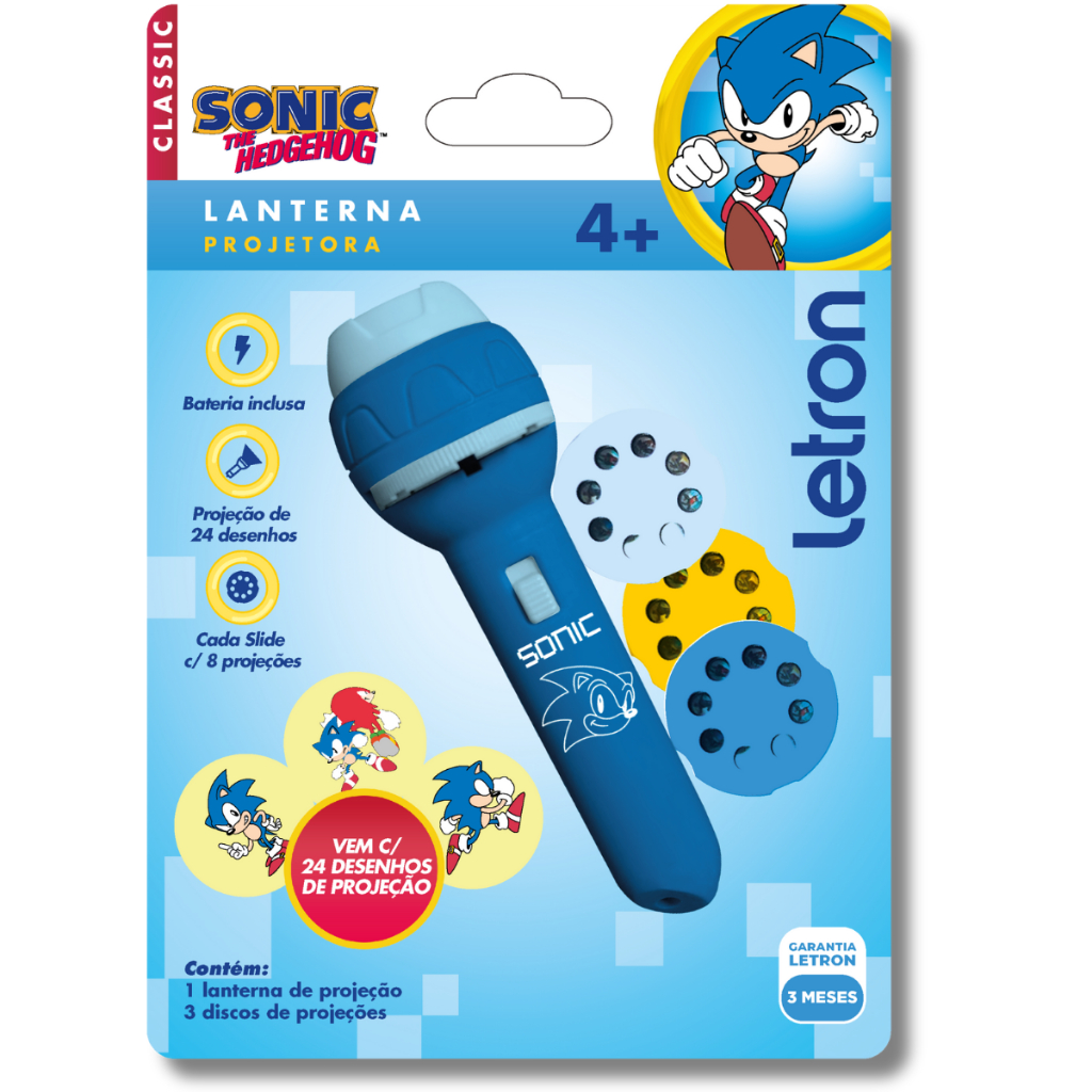 Kit Brinquedo Lanterna Sonic 24 Imagens Projetor Infantil