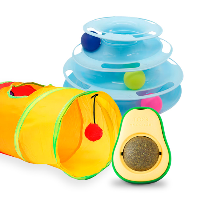 Kit Brinquedo para Gato Interativo com Túnel, Torre de Bolinhas e Abacate com Catnip Estímulo Felino Pet