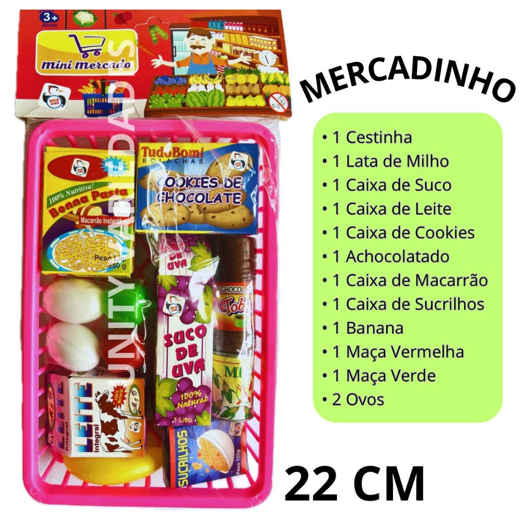 COMPRANDO ATE MEIO DIA, ENVIAMOS NO MESMO DIA! Kit Brinquedos Infantis Para Meninas ou Meninos Mini Mercado 13 PECAS com comidinhas Cestinha e Acessórios, Frutas e Legumes - ENVIO IMEDIATO O kit Mercadinho e um presente incrível para Meninos e Meninas no Aniversário, Dia das Crianças ou Natal! Este kit Educativo e Pedagógico estimula o aprendizado de forma divertida e lúdica, funcionando como um brinquedo para Todas as crianças e ate em fase de introdução alimentar ou com dificuldades em aceitar certos alimentos. Promove a socialização, identificação de cores, formas e texturas, além de ser perfeito para brincadeiras de faz de conta, permitindo que as crianças imitem o que veem os adultos fazerem na cozinha, aproximando-as do mundo cotidiano. Complemento Para Geladeira Infantil e Fogão Infantil e diversão para brincar de Casinha! Conteúdo do Kit: • 01 Cestinha • 01 Caixa de Suco • 02 Ovos • 01 caixinha de Leite • 02 caixas de Batata Chips • 01 caixinha de macarrão spaghetti • 01 milho • 01 Achocolatado Especificações do Produto: • Peso: aproximadamente 150 g • Cor: colorido • Material: plástico (não comestível) • Indicado para crianças maiores de 3 anos Perguntas Freqüentes: • Os produtos estão à pronta entrega? Sim, todos os produtos anunciados estão disponíveis para envio imediato. Esse kit é perfeito para estimular a imaginação e tornar as brincadeiras ainda mais reais, com itens inspirados no dia a dia. Ideal para uso no quintal, sala, quarto ou até mesmo para levar em passeios, proporcionando diversão em qualquer lugar! Para Geladeira Infantil e Fogão Infantil