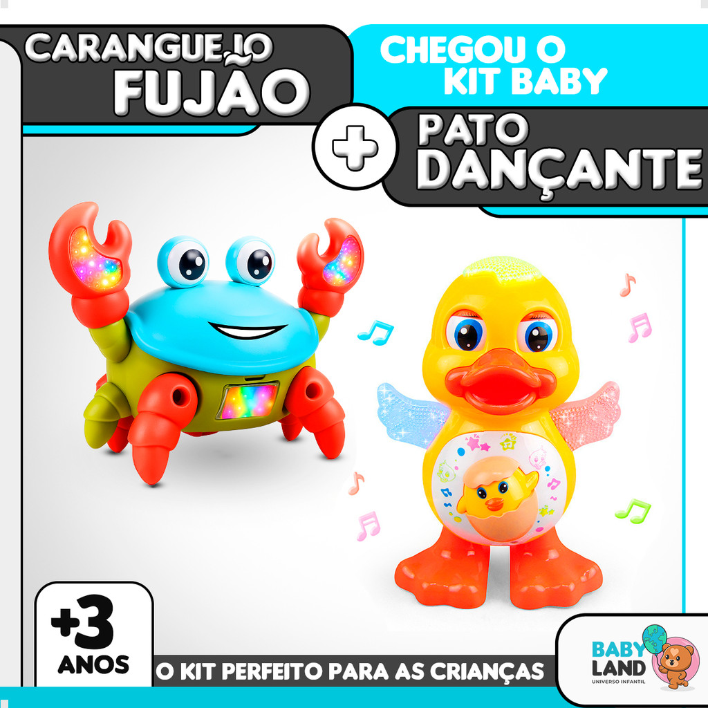 Kit Baby Caranguejo Fujão + Pato Dançante – Diversão Garantida! Prepare-se para ver os pequenos darem muitas risadas com o kit de brinquedos mais animado e divertido! O Caranguejo Fujão anda de ladinho como um caranguejo de verdade, tocando músicas super divertidas e acendendo luzes de LED coloridas! Ele se movimenta sozinho, despertando a curiosidade e o encantamento das crianças. O Pato Dançante também é um show à parte: ele dança, acende luzes e ainda toca músicas alegres que vão animar qualquer ambiente! Ambos os brinquedos são educativos, interativos e perfeitos para estimular o desenvolvimento sensorial, motor e cognitivo dos bebês e crianças! Funcionamento: Cada brinquedo utiliza 3 pilhas AA (não inclusas). - Ideal para bebês e crianças a partir de 1 ano - Luzes LED + Músicas divertidas - Movimento automático - Kit completo com os 2 brinquedos mais divertidos APROVEITE! Garantia do vendedor: 30 dias