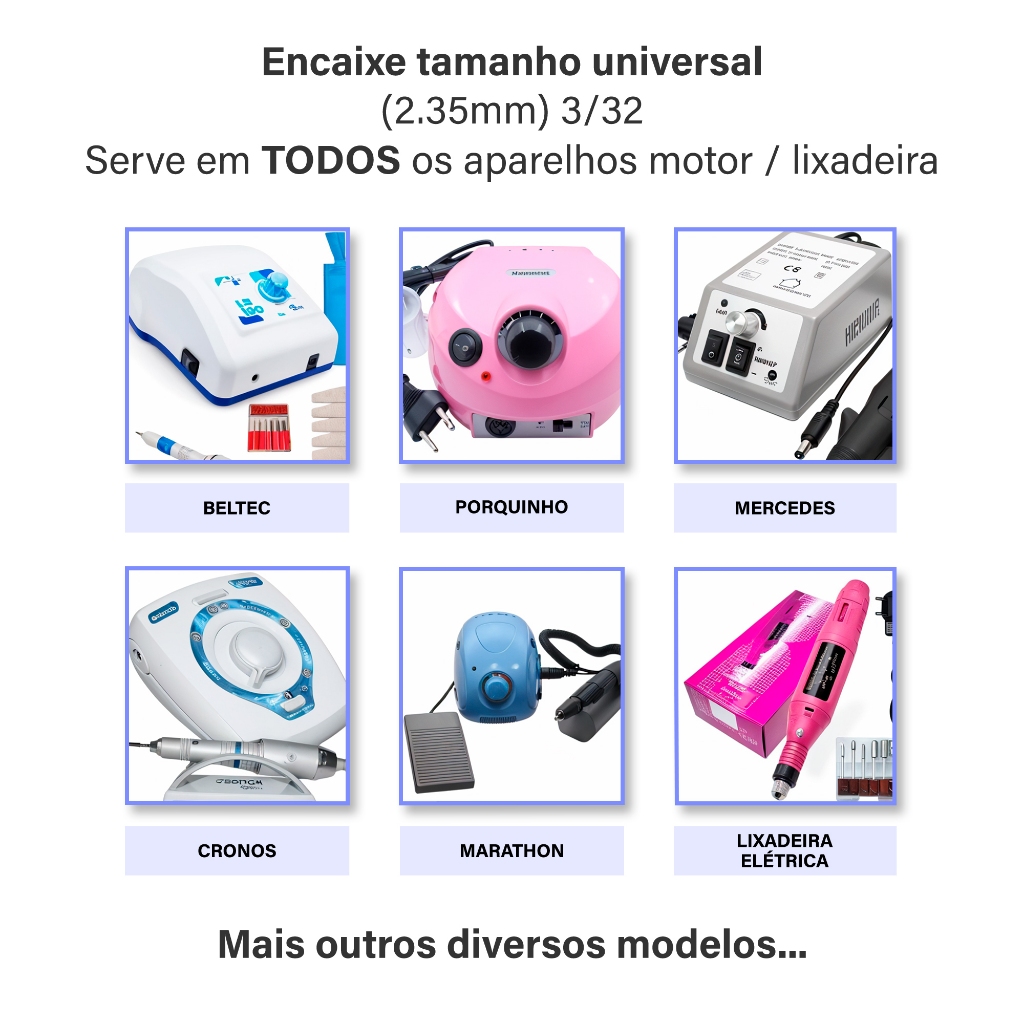 Tenha mais precisão e acabamento profissional nos seus atendimentos! Este kit com broca diamantada 718 + broca 720 é ideal para quem busca qualidade, segurança e versatilidade nos cuidados com as unhas. Com encaixe padrão de 2,35 mm, são compatíveis com a maioria dos micromotores e ideais para uso profissional ou doméstico. 📦 Composição do Produto 1× Broca Diamantada Modelo 718 (ponta fina para contornos e áreas delicadas) 1× Broca Diamantada Modelo 720 (acabamento e limpeza de gel e cutícula) Diâmetro padrão: 2,35 mm Material: Grão diamantado esterilizável e resistente ✅ Benefícios Práticos Corte preciso e seguro para remoção de cutículas e gel Alta durabilidade: material resistente ao desgaste Esterilizável: mais higiene e segurança para cada cliente Compacto e funcional: ideal para quem está começando ou deseja reposição Compatível com lixas, ponteiras e micromotores padrão 👩🎓 Indicação de Uso Essencial para manicures, pedicures, esteticistas ou iniciantes que buscam um kit compacto, prático e com excelente desempenho. 🚀 Garantia Produto à pronta entrega com envio rápido e embalagem reforçada. Compre agora e ofereça mais precisão nos seus serviços de manicure com esse kit indispensável! 🔎 Tags: broca, diamantada, manicure, broca 718, broca 720, esterilizável, cutícula, acabamento, precisão, grão diamantado, 2,35mm, cuidados unhas, profissional, pedicure