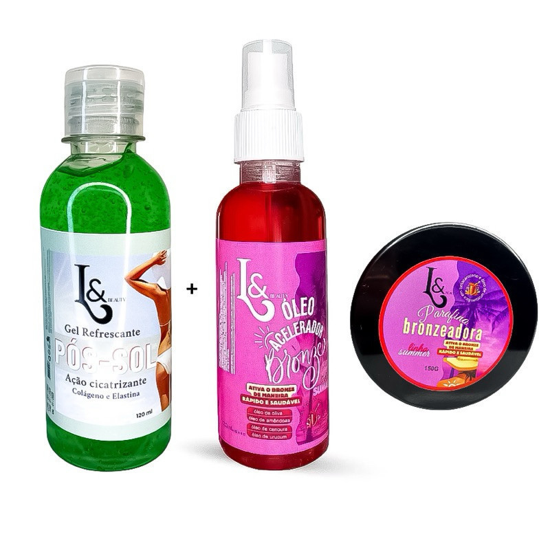 Kit Bronzeador 150ml + Parafina Aceleradora L&Beauty Marquinha De Fita Biquíni +Pós sol Cicatrizante