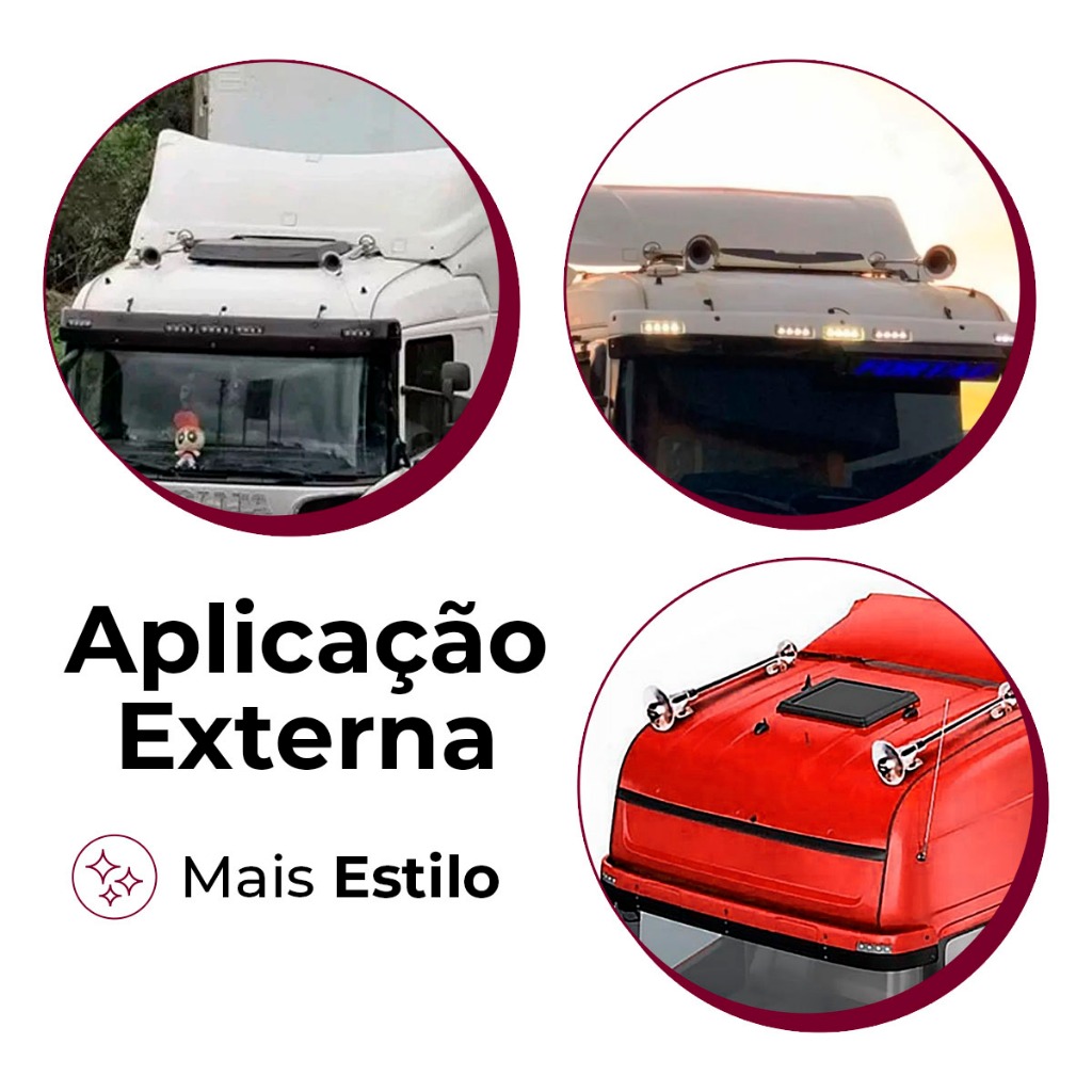 Kit Buzina Marítima 74cm Completo 24v Válvula Conexões Caminhão Super Potente Maritima Cromada