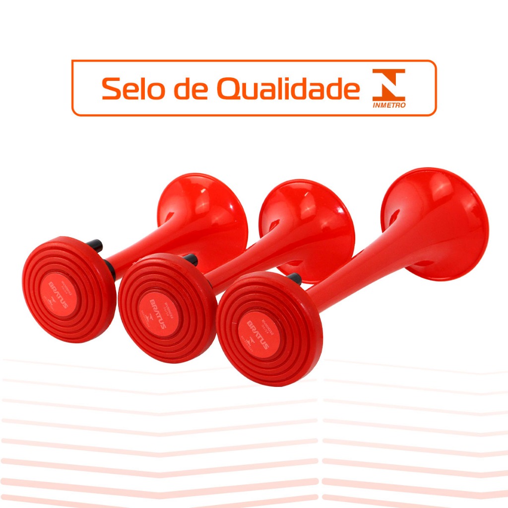 A Bratus é especialista em potência e qualidade sonora para veículos e embarcações. A Buzina 3 Cornetas Universal com Relê e Compressor 12V oferece som forte, durabilidade e fácil instalação, sendo ideal para quem deseja se destacar com estilo e segurança. Produto a pronta entrega Ficha Técnica: • Marca: Bratus • Modelo: Buzina Automotiva 3 Cornetas • Tensão: 12V • Tipo: Elétrica com compressor • Aplicação: Universal – carros, caminhões, ônibus, barcos, lanchas, jeeps, entre outros • Quantidade de cornetas: 3 (14 cm, 16 cm e 21 cm) • Material: Plástico resistente • Cor: Vermelho • Nível de som: 93 a 118 dB • Tensão de alimentação: 12V DC • Consumo: 16 a 24A • Dimensões (corneta grande): 22 x 7,5 x 7,5 cm • Mangueira transparente: 84 cm • Pressão suportada: até 9 bar Benefícios e diferenciais: ✅ Som Potente: Buzina com sinal sonoro forte e marcante para máxima segurança sonora ✅ Resistência Extrema: Funciona bem mesmo sob chuva, calor ou poeira ✅ Instalação Fácil: Acompanha relê, mangueira e parafusos para montagem prática ✅ Uso Universal: Compatível com veículos leves, pesados e embarcações Itens inclusos na embalagem: • 3x Cornetas vermelhas • 1x Mini compressor • 1x Tubo transparente • 1x Relê • 1x Conjunto de anilhas e parafusos Garanta já a sua Buzina 3 Cornetas Universal com Relê e Compressor Bratus e tenha potência sonora, versatilidade e qualidade para o seu veículo! ○○○○○○○○○○○○○○○○○○○○○○○○○○○○○○○○○○○○○○○○○○○○○○○○ A Ninja Parts, fundada em 2016 em Curitiba-PR, é um e-commerce referência nacional em peças e acessórios automotivos. Oferecemos as melhores marcas com qualidade e envio rápido, priorizando a satisfação do cliente e um excelente atendimento. Garantia: • 90 dias a partir da data da compra • Garantia válida apenas para defeitos de fábrica. Não cobre mau uso, má instalação, quebra ou adaptações que alterem características originais do produto Trocas e Devoluções: • Importante que todos os itens sejam enviados nas embalagens originais de forma segura • Caso o produto retorne danificado, os custos ficarão sob responsabilidade do cliente Recomendação: • A instalação deve ser realizada por um profissional de sua confiança Compra Garantida! • Transação Segura • Estorno automático em caso de imprevistos • Acompanha nota fiscal