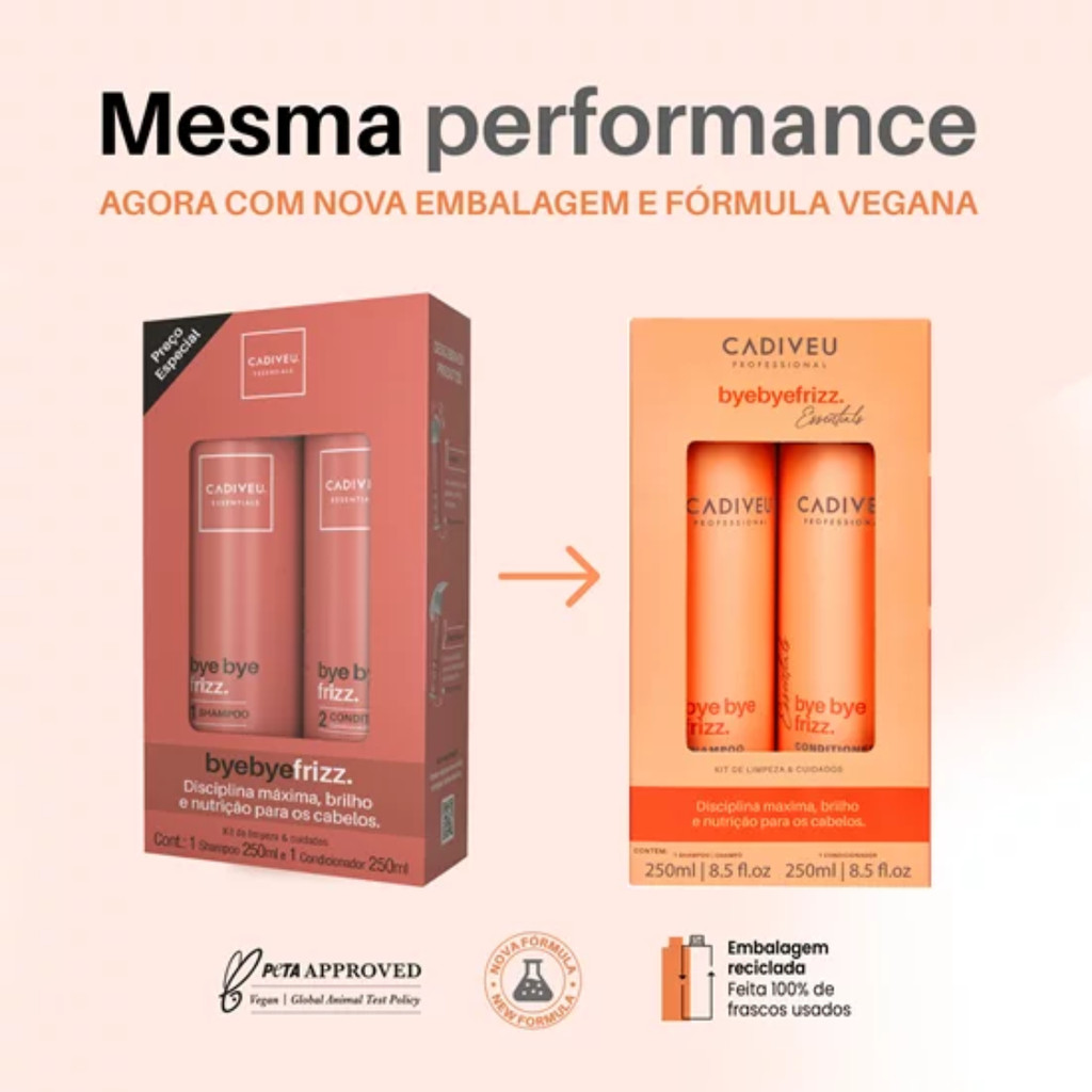 Kit Bye Bye Frizz Essentials Shampoo + Condicionador 250ml - Cadiveu Professional 100% Original