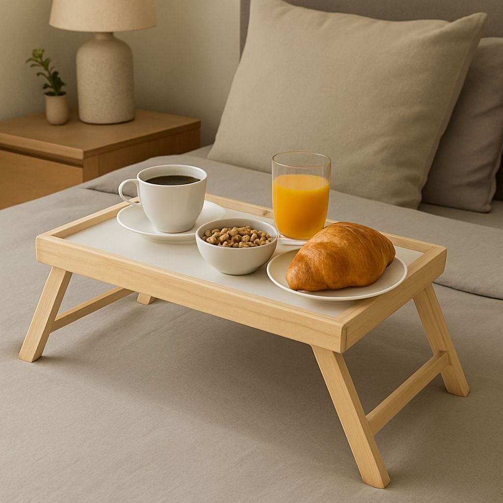 Kit c/ 1 ou 2 Bandeja, Mesa de Café da Manhã Madeira com Pés Dobráveis | Cama
