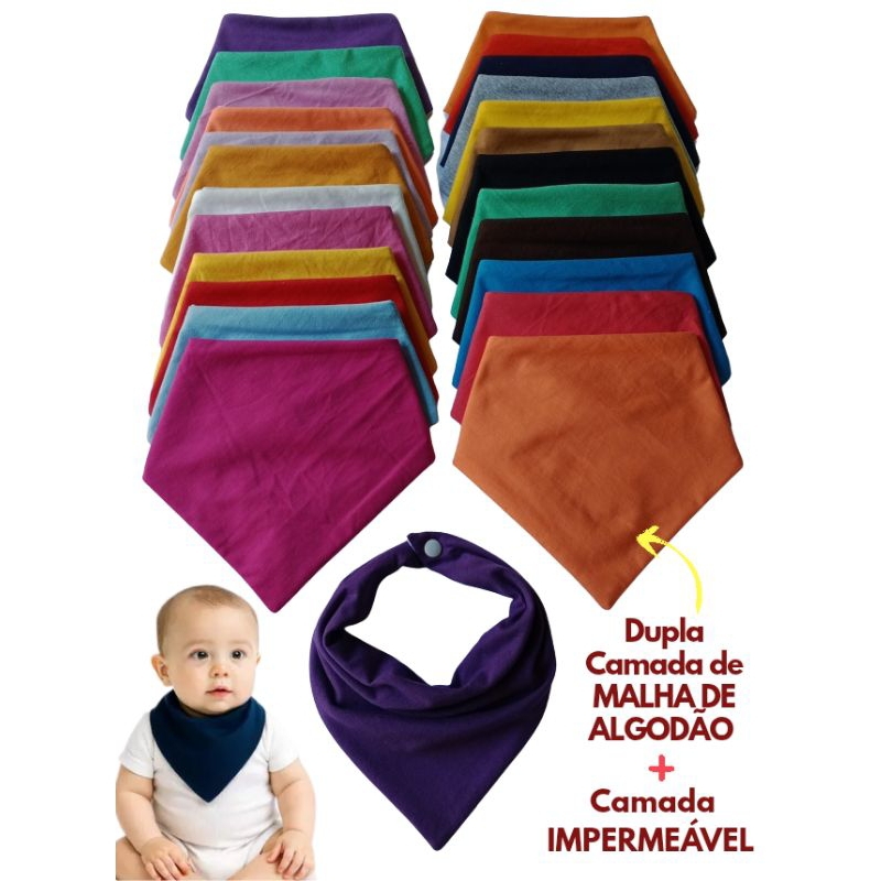 Babador bandana em malha 100% ALGODÃO IMPERMEÁVEL, kit com 10 unidades dupla face, Qualidade Premium Para bebês de 0 á 2 anos CARACTERÍSTICAS Dupla face pode ser usado dos dois lados 100% algodão hipoalergênico Macio cores lindas vibrantes e atuais Não desbota Não dá bolinhas. Não enviamos cores repetidas AQUI TEMOS DUAS VARIAÇÕES. KIT MENINO KIT MENINA *KIT COM 10 UNIDADES *KIT COM 5 UNIDADES Escolha a sua variação na opção de compra. DUPLA CAMADA DE TECIDO 100% ALGODÃO MAIS UMA CAMADA INTERNA DE PLASTICO PERFUMADO. Produto macio, confortável muito maleável. SUPER IMPERMEÁVEL, ( pode passar a ferro em temperatura média. OBSERVAÇÃO... as cores são sortidas a depender da disponibilidade de estoque. GARANTIMOS 10 CORES EM MALHA 100% ALGODÃO Temos kits para meninos 100% algodão Kits para meninas 100% algodão Cores lisas Escolha o gênero menino ou menina na hora da compra. Aquele acessório Super útil e muito estiloso... Os babadores foram lançados a muitos anos, e com o intuito de proteger a roupinha do bebê na hora da alimentação, mas hoje se tornou um clássico, e além de proteger a roupinha do bebê e mantê-lo sequinho, ele também traz muito estilo para o look, seja no dia a dia ou naquele evento mais sofisticado. Esta peça se tornou algo indispensável no enxoval do seu bebê, pois na hora da alimentação, ou quando os primeiros dentinhos começam a nascer , os bebês babam muito, e e aí que entra toda essa proteção e toque de estilo, dessa peça essencial e incrivelmente útil. **Nossos babadores são confeccionados em tecido de malha, 100% ALGODÃO em cores lisas o verso é em tecido de malha 100% ALGODÃO de cor branca, possui uma camada de plástico polietileno internamente tecidos macios, oque causa conforto ao toque, para a pele do bebe. POR SER DE ALGODÃO PURO O tamanho é 40x28 (LxC) Triangular ABNT NBR 15.800, eventualmente pode pode ocorrer um percentual de até 1.5cm para mais ou para menos. Babador bandana Banheiro Babador de tecido Babador menina Babador menino Kit babador menina Kit babador menino kit babador de tecido Babador menina Impermeável Babador menino Impermeável Kit babador de tecido impermeável Kit babador Impermeável Babador serve de 0 a 24 meses Obs: Tire suas dúvidas atravéz do chat #Babadorbandana #Babeiro #Babadordetecido #Babadormenina #Babadormenino #Kitbabadormenina #Kitbabadormenino #kitbabadordetecido #BabadormeninaImpermeável #BabadormeninoImpermeável #Kitbabadordetecidoimpermeável #KitbabadorImpermeável