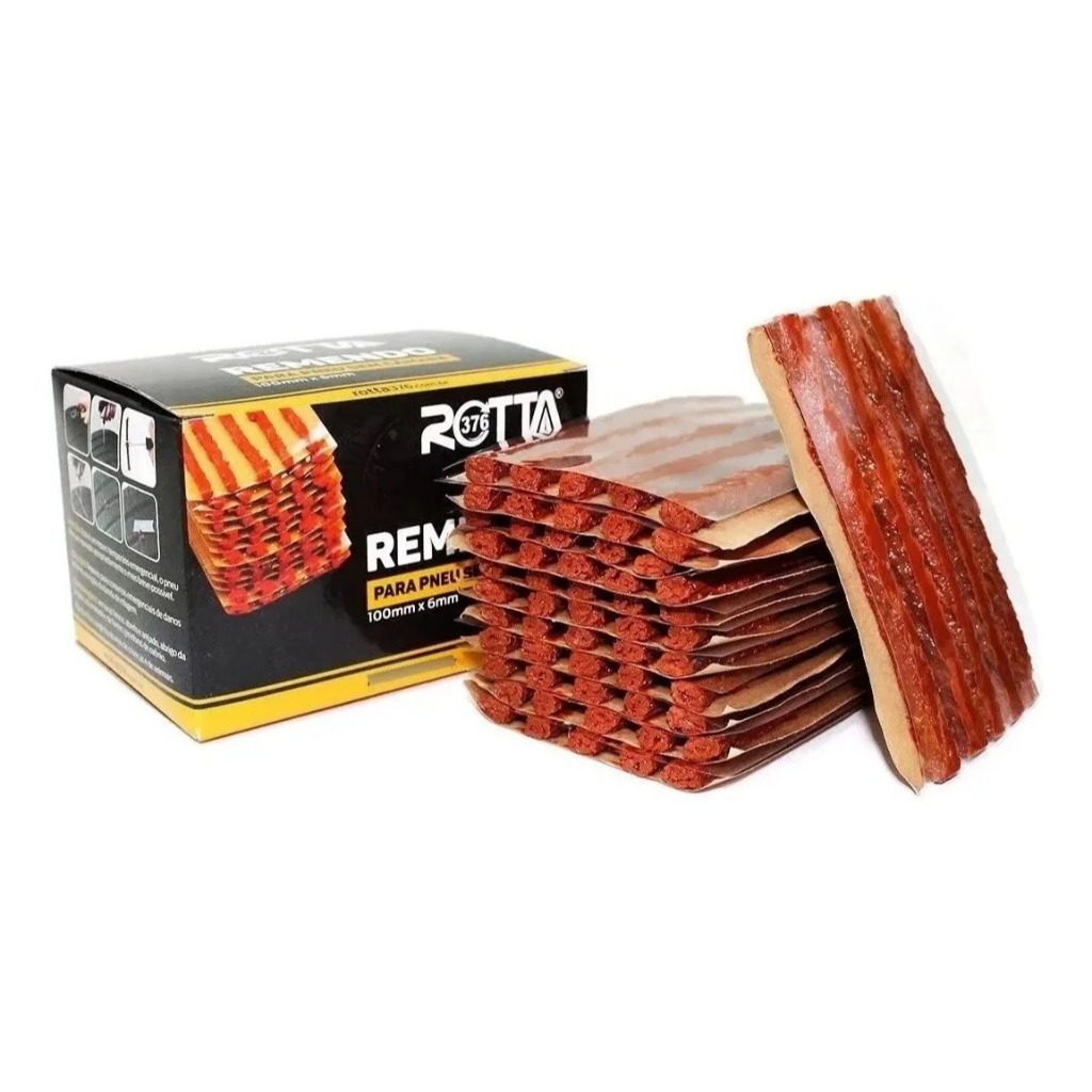 KIT COM 10 CAIXAS – 60 UNIDADES POR CAIXA (TOTAL: 600 REMENDOS) Remendo Premium para Pneu Sem Câmara – Marca ROTTA | Produto Original • Alta Qualidade • Pronta Entrega com Nota Fiscal O Remendo Premium ROTTA é a escolha ideal para quem procura um refil confiável, durável e com padrão europeu de qualidade. Fabricado com borracha especial, oferece excelente flexibilidade e vedação, tornando-se a solução perfeita para reparos rápidos e emergenciais em pneus sem câmara (tubeless). Esse kit é ideal para oficinas, borracharias, autocenters ou para quem quer manter estoque com excelente custo-benefício. O QUE VAI NO KIT: 10 caixas lacradas Cada caixa contém 60 unidades Total: 600 remendos de alta performance ESPECIFICAÇÕES DO PRODUTO: Marca: ROTTA Modelo: Refil sem câmara / Tipo Macarrão Comprimento: 100 mm (4 polegadas) Diâmetro: 6 mm Material: Borracha flexível e resistente Aplicação: Pneus sem câmara (Carros e Motos)