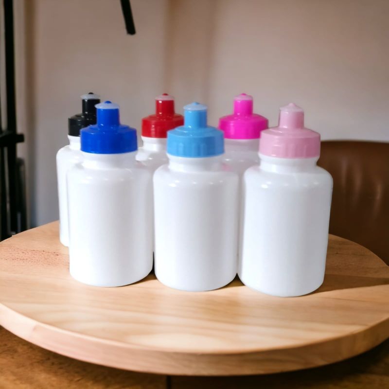 garrafinha Squeeze, com bico de silicone. Material: PEAD atóxico. Material resistente e flexível. confeccionada na cor branca com a tampa em diversas opções cores. Capacidade: 300 ml. vendido Lisa sem Personalização ao efetuar sua compra nos informe a opção de cor que iremos atender prontamente. Trabalhando com estoque pronta entrega