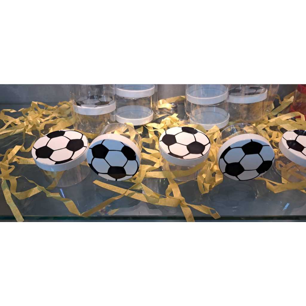 Kit C/ 10 ou C/20 Potes Acrílico 5,4cm Bola de Futebol Copa Lembrancinhas