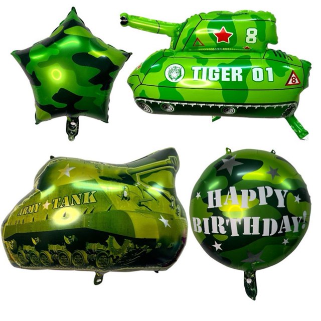 Kit c/12 Misto Balão Exército Happy Birthday Tnque de Guerra 70cm Festa Enfeite Decoração- 3 de cada