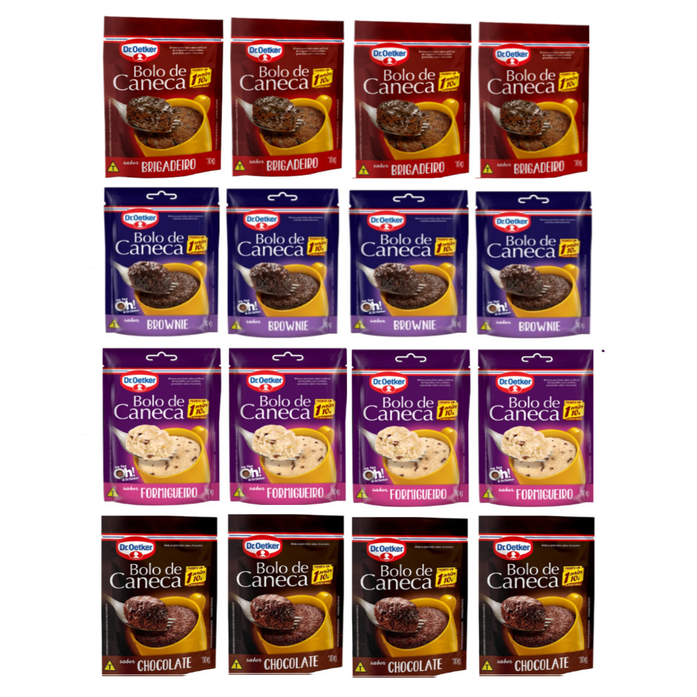 Kit c/ 16un Bolo de caneca 4 sabores Diferentes