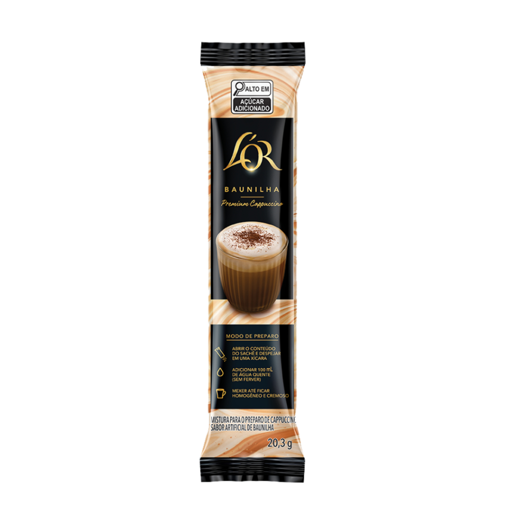 Kit c/18 Mistura para preparo de Cappuccino em sachê Lor - Baunilha, Caramelo e Chocolate Sabores disponíveis: Baunilha - 20,3g Caramelo - 20,3g Chocolate - 19,6g Pistache - 19,5g Selecione o sabor de sua preferência na hora da compra, caso escolha o misto, estaremos enviando a quantidade dividida igualmente nos sabores disponíveis. Qualquer dúvida é só nos mandar uma mensagem no chat. Caso queira receber de outra diferente, avisar no chat após a compra! Crie seu próprio Cappuccino Premium em segundos. Um momento de luxo e indulgência a qualquer hora e lugar. Relaxe e aprecie uma experiência de café que irá despertar os seus sentidos. Conheça um pouco de cada sabor Baunilha 20,3g - Rico e Aromático Com uma combinação rica e aromática de café, leite e um toque de baunilha coberta com uma camada de espuma cremosa. Caramelo 20,3g - Intenso e Refinado Com uma combinação intensa e refinada de café, leite e um toque de caramelo coberta com uma camada de espuma cremosa. Chocolate 19,6g - Suave e Aveludado Com uma combinação suave e aveludada de café, leite e cacau coberta com uma camada de espuma cremosa. Pistache 19,5g - Pistache e Chocolate - Tipo Chocolate Dubai Com uma combinação surpreendente de café, leite e um toque de pistache e chocolate coberta com uma camada de espuma cremosa. Modo de Preparo: - Abrir o conteúdo do sachê e despejar em uma xícara. - Adicionar 100ml de água quente (sem ferver). - Mexer até ficar homogêneo e cremoso. Armazenagem: - Manter em local seco e fresco. Após aberto, consumir todo o conteúdo do sachê. *CONTÉM AROMATIZANTE SINTÉTICO IDÊNTICO AO NATURAL E AROMATIZANTE ARTIFICIAL. *ALÉRGICOS: NÃO CONTÉM GLÚTEN. CONTÉM LACTOSE. CONTÉM LEITE E DERIVADOS. PODE CONTER DERIVADOS DE SOJA.