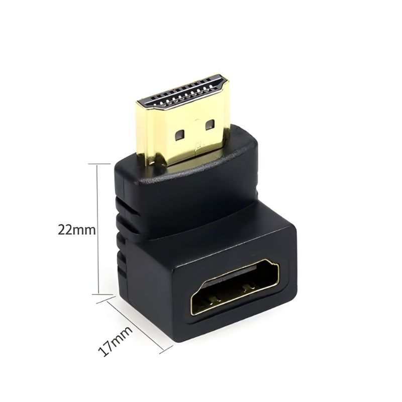Conector Hdmi Macho para HDMI Fêmea Resolução Suportada 3840×2160 - Plug and Play Conector HDMI Fêmea Conector HDMI Macho Adaptador compacto com excelente qualidade. - Excelente opção para quem precisa instalar a TV em um suporte fixo ou molduras com pouco espaço traseiro. - Além disso, evita que o cabo HDMI danifique por ficar dobrado. - Compatível com Hdmi: 1.0/ 1.1/ 1.2/ 1.3/ 1.4 - Tamanho: 2 x 2 x 1.5 cm (C x L x A)
