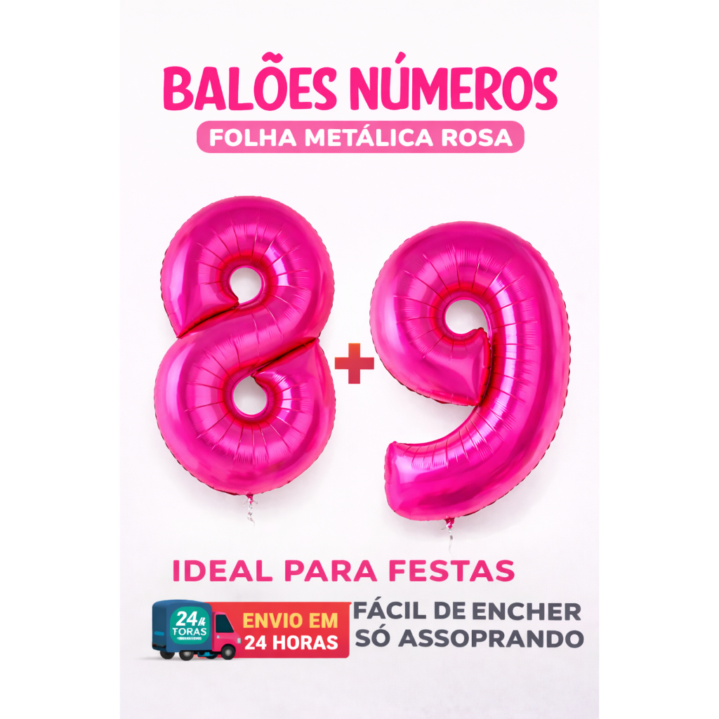 Kit C/ 2 Balões Numero Metalizados Rosa Decoração Festa Aniversário Evento - 40 cm