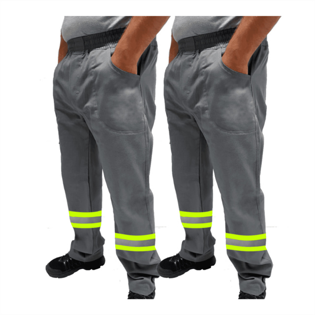 Kit C/ 2 Calça de Uniforme Encanador Brim Profissional Reforçada Com Faixa Refletiva Verde