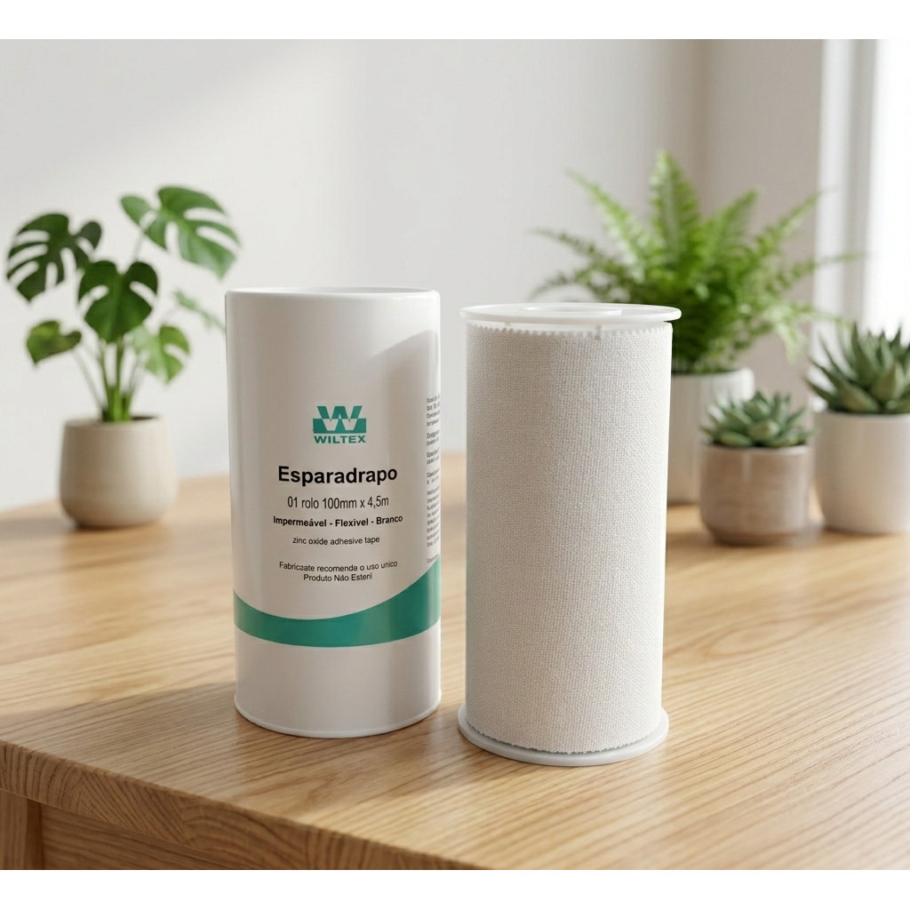 Registro Anvisa: 10150470704 O Esparadrapo Wiltex em rolo com carretel é indicado para fixação de todos os tipos de curativos, seringas, agulhas, cateteres etc. Branca; Extra flexível; Impermeável; Tamanho 10cm x 4,5m; Extremamente aderente; Fixar curativos, drenos, cateteres entre outros; Pode ser usada para fixar cânulas intravenosas. Produto isento de látex.