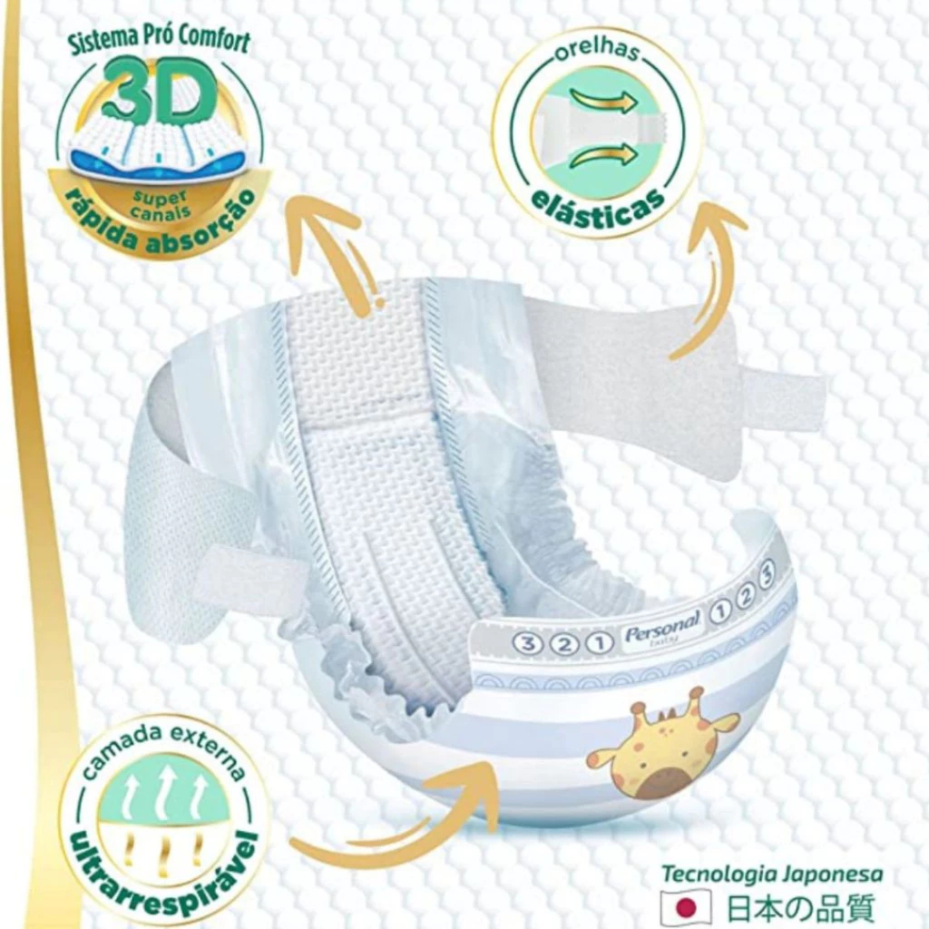 Kit contém 2 pacotes da Fralda Personal Baby Premium Protection RN a P C/40 até 6Kg cada pacote Apresentamos a revolucionária Fralda Personal Baby Premium Protection, projetada para oferecer o melhor cuidado ao seu bebê. Com o sistema Pró Comfort 3D e super canais de rápida absorção, nossa fralda manterá seu bebê sempre sequinho e confortável, proporcionando-lhe horas de tranquilidade. Graças à tecnologia japonesa de ponta, as Fraldas Personal Baby Premium Protection são incomparáveis. Suas orelhas elásticas ajustam-se suavemente ao corpo do bebê, garantindo um ajuste perfeito e evitando vazamentos indesejados. Além disso, a camada externa ultrarrespirável permite que a pele do bebê respire, prevenindo irritações e mantendo-a saudável. Escolha a qualidade e o cuidado que seu bebê merece.