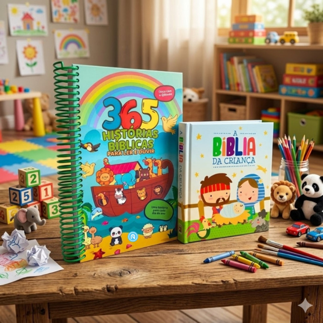 Kit 2 Livros. 365 Histórias Bíblicas: Você quer que os seus filhos conheçam as histórias mais incríveis da Bíblia, de forma divertida e interativa? Você quer que eles se sintam parte da história, e não apenas espectadores? Então você precisa conhecer o livro 365 Histórias Bíblicas para Ler e Ouvir. 365 Histórias Bíblicas para Ler e Ouvir é um livro que vai despertar a curiosidade e a imaginação dos seus filhos, além de ensinar valores morais e espirituais. É um livro que vai acompanhar o crescimento dos seus filhos, e que eles vão querer ler e ouvir de novo e de novo. Não perca essa oportunidade e compre já o seu exemplar de 365 Histórias Bíblicas para Ler e Ouvir, o livro que vai transformar a sua forma de contar histórias da Bíblia para os seus filhos! Paginas: 365 Formato: 14 x 21 cm Profundidade: 4 cm Acabamento: Premium Ano da Edição: 2024 A Bíblia Da Criança: Você está procurando um livro que vai encantar e educar o seu filho ao mesmo tempo? Um livro que vai transmitir os ensinamentos mais valiosos para a sua formação? Então, você precisa conhecer o livro A Bíblia da Criança, que traz as principais histórias bíblicas em uma linguagem simples, divertida e ilustrada. O seu filho vai se maravilhar com as histórias de Daniel na cova dos leões, Jonas e a baleia, o nascimento de Jesus e muitas outras histórias que mostram o caráter, a sabedoria e a misericórdia de Deus. A Bíblia da Criança é um livro que vai estimular no seu filho o amor pela Palavra de Deus, que é o guia para a sua vida. • Propicia, pela leitura compartilhada, momentos de aconchego em família. • Formato ideal para o manuseio das mãozinhas pequenas. • Edição com letras maiúsculas ( caixa alta ) que facilitará para uma melhor compreensão dos pequenos quando tiverem iniciando sua alfabetização e primeiras leituras. • Cartonado e capa dura, resistente. - Todas historias com belíssimas ilustrações bem coloridas. Paginas: 21 Formato: 14 x 16 cm Profundidade: 2 cm Acabamento: Capa Dura Almofadada Ano da Edição: 2024