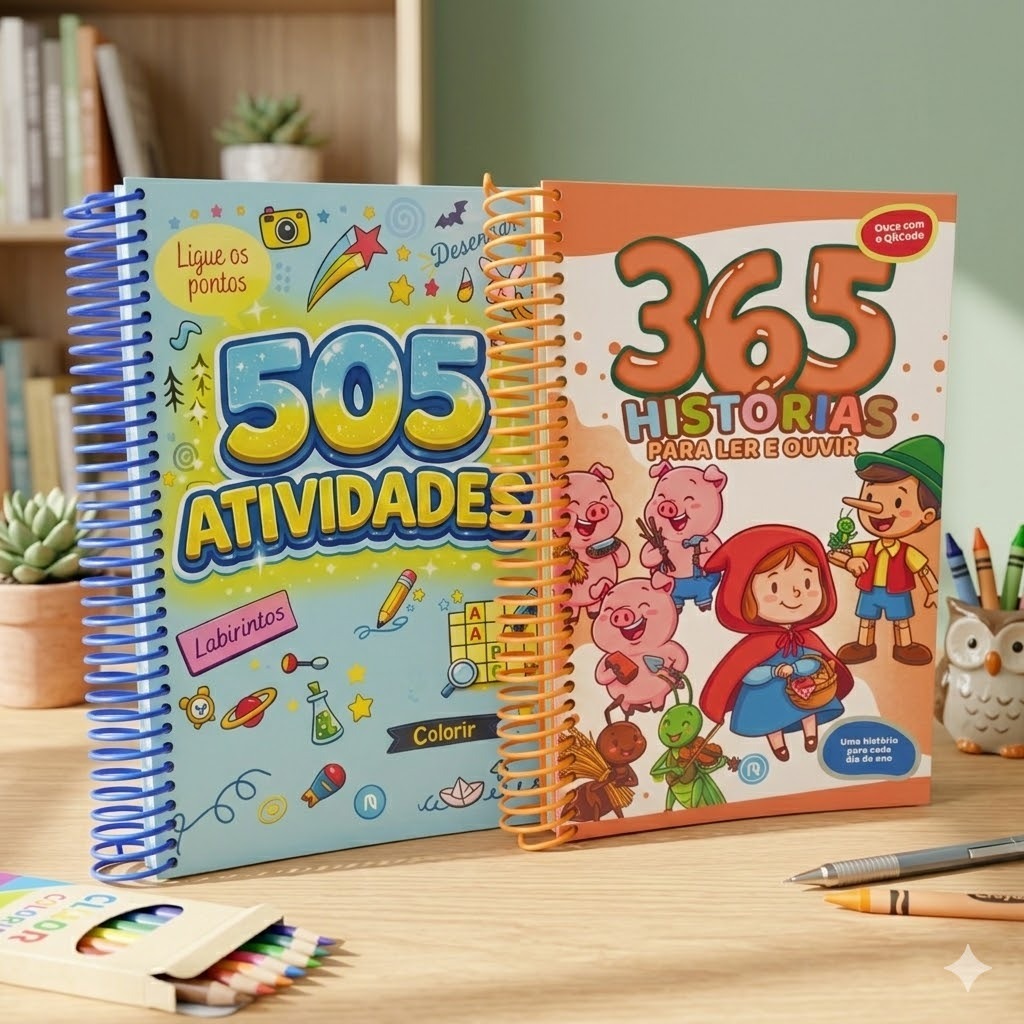 Kit C/2 Livros / 365 Histórias para Contar com Qrcode + 505 Atividades