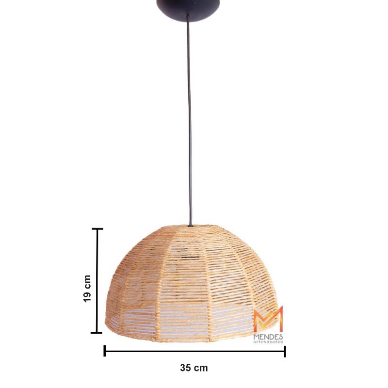 Pendente de palha de milho tecido a mão combina com vários ambientes possui uma beleza natural rustica e sofisticado ao mesmo tempo. Ótima opção para sala ,quarto ,sala de jantar, área de lazer ,restaurantes ,varandas.... *Tamanho: MEIA LUA G : 55 cm de largura 30 de altura MEIA LUA P : 35 cm de largura 19 cm de altura *Estrutura de ferro *Fiação completa para instalação de 1 metro ajustável com soquete universal ,cabo ,canopla e afins *Disponível Fiação em 2 c ores: Preto e Branco *Qualquer duvidas chamar no chat teremos o prazer em atendê-los