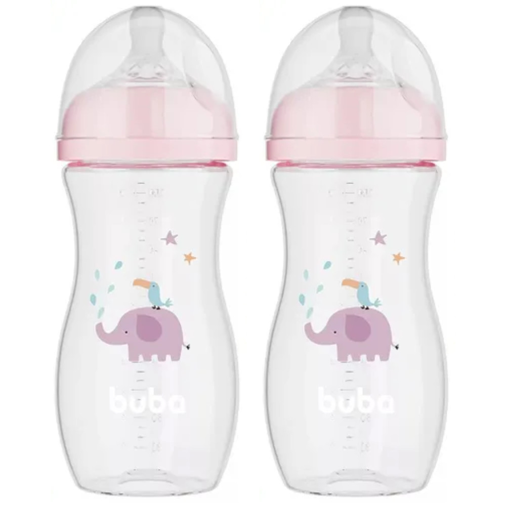 KIT C/ 2 MAMADEIRAS EASY FLOW ELEFANTE ROSA 330ML +4 MESES - BUBA