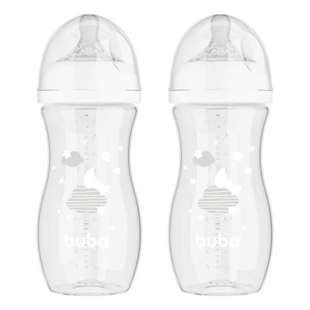 KIT C/ 2 MAMADEIRAS EASY FLOW NUVEM BRANCA 330ML +4 MESES - BUBA