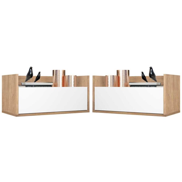 O Kit com 2 Mesas de Cabeceira 80 cm Suspensa Multimóveis é uma solução prática para você deixar o seu quarto mais bonito e complementar seu ambiente. Produzido em MDP com acabamento acetinado (cerca de 20% de brilho), que garante maior durabilidade e facilidade na limpeza, possui 1 gaveta com amplo espaço interno e corrediças metálicas que proporcionam mais leveza no manuseio. Ainda, acompanha kit para ser montado de forma suspensa, conforme a altura que você quiser do chão. Seu design clean permite que seja utilizado em diferentes ambientes, adaptando-se conforme sua necessidade. Conteúdo da Embalagem: 2 (duas) mesas de cabeceira 2 (dois) kits com suporte para mesa de cabeceira Dimensões do produto montado: Altura: 30cm | Largura: 80cm | Profundidade: 40cm *Você pode consultar as medidas internas na imagem técnica do produto. Disponível nas cores: Branco - Rustic/Branco - Preto Texturizado *As cores do produto podem sofrer variações de tonalidade de acordo com as configurações do seu dispositivo. Imagem meramente ilustrativa. Decoração não acompanha o produto. O produto será entregue desmontado e não disponibilizamos o serviço de montagem.