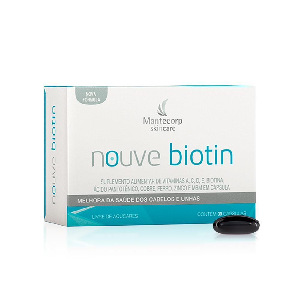 Produtos inclusos no kit: Duas caixas de Nutracêutico Nouve Biotin - 30 capsulas cadaO Nouve Biotin contém 30 cápsulas é um nutricosmético composto por Biotina, vitaminas e minerais essenciais para a saúde e fortalecimento das unhas e cabelos. As cápsulas são fáceis de tomar e proporcionam ao seu corpo os nutrientes necessários para ter cabelo e unhas saudáveis.Produto livre de açúcares, calorias e lactose, e não contém ingredientes de origem animal, petrolatos e parabenos. Indicado por dermatologistas.